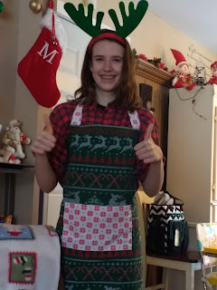 One simply must listen to Christmas music and adorn the Christmas apron and Christmas headgear when preparing Christmas food!
